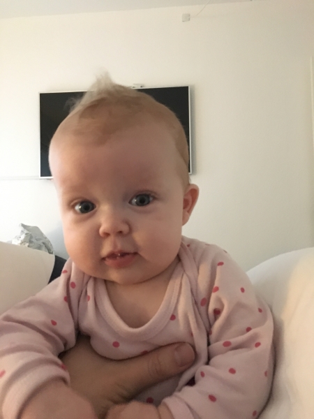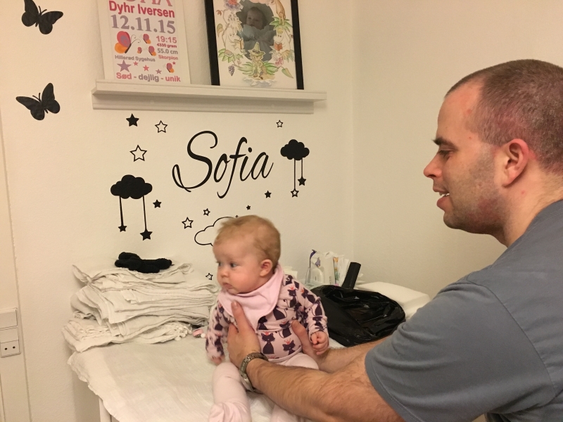 Sofia blev til ved kejsersnit kl. 19.15 på Hillerød hospital. Hun var 55 cm lang og vejede 4330 gram.